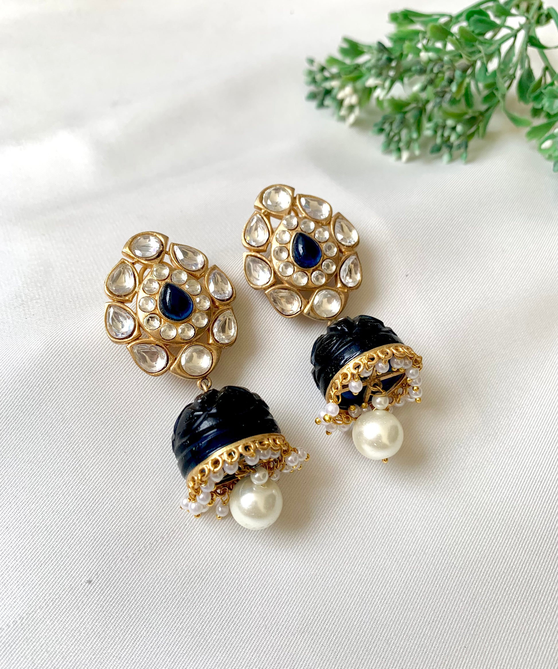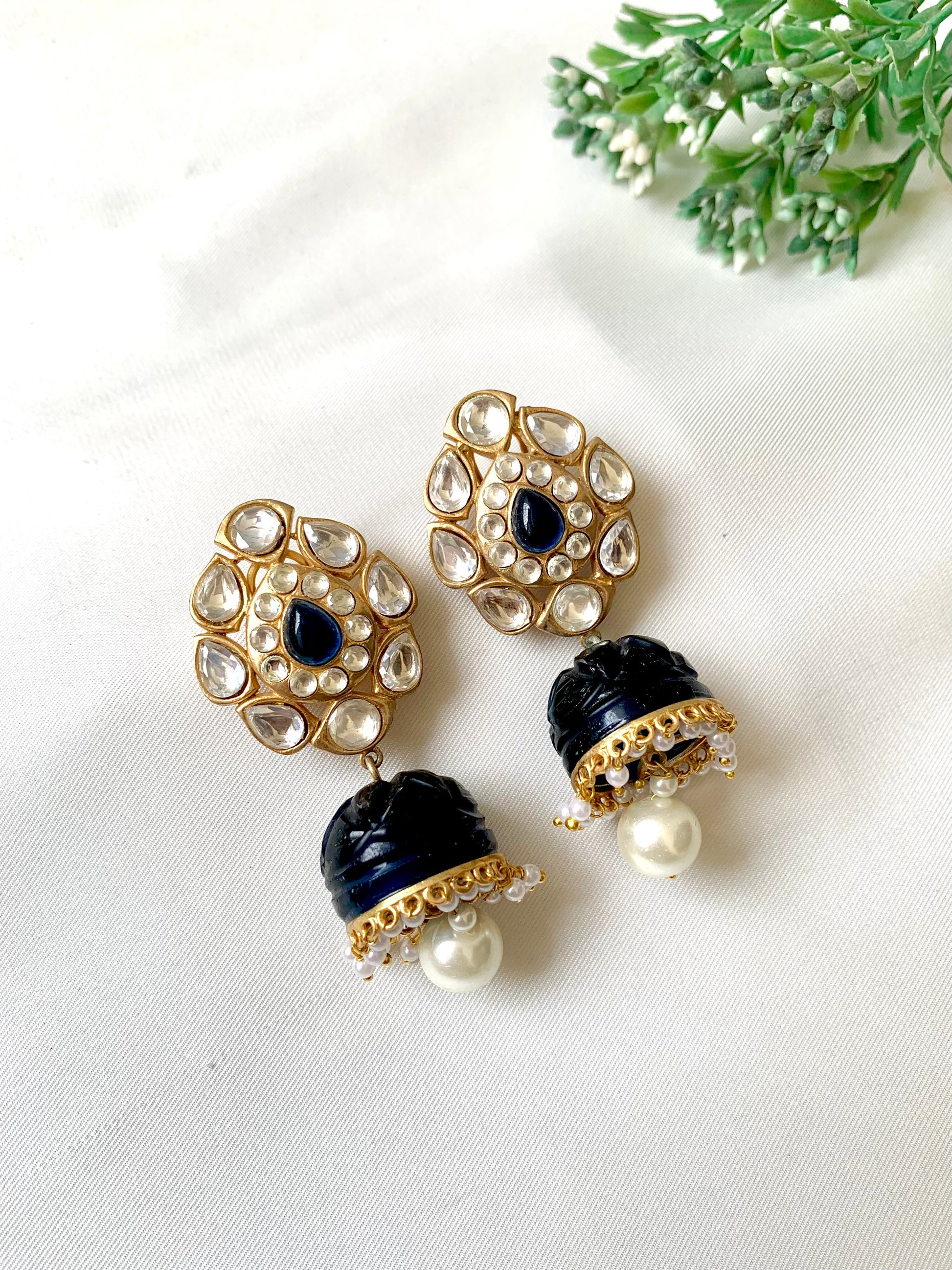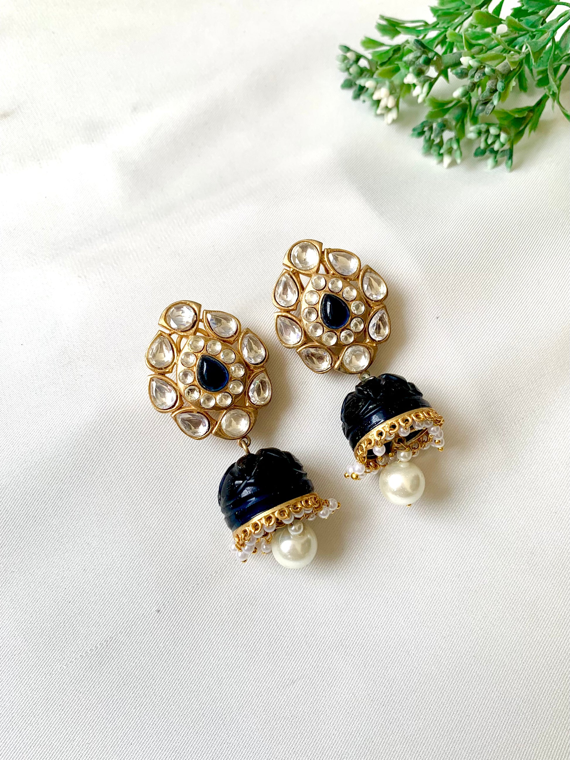 Stones: High quality Polki Kundan, Semi-Precious hand-carved Sapphire & Pearls