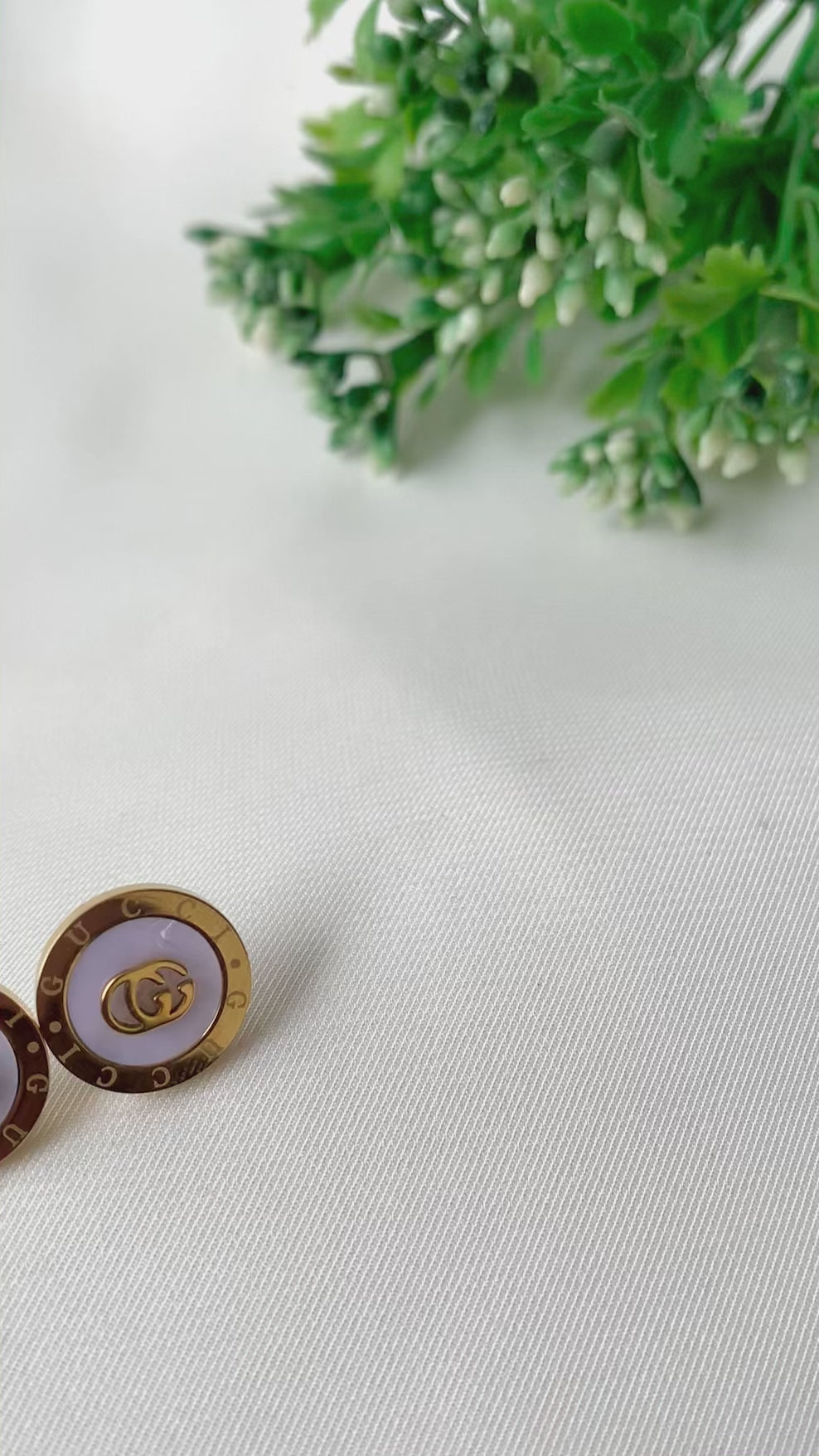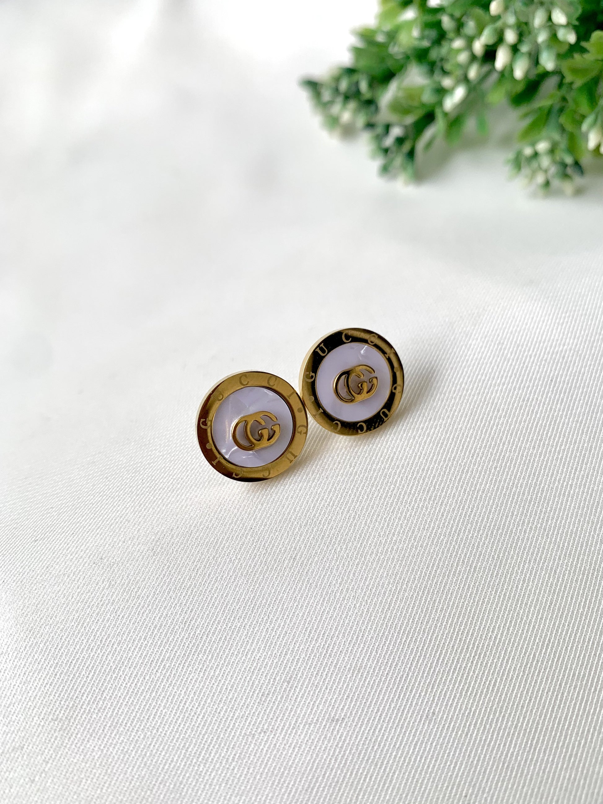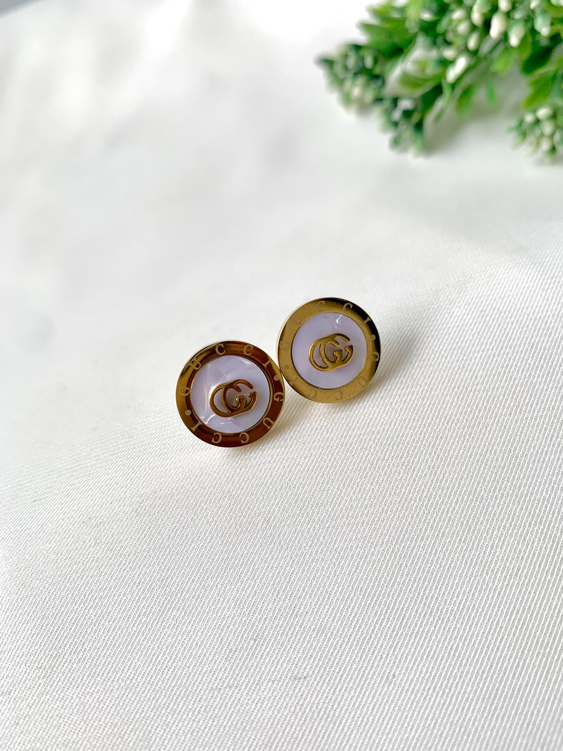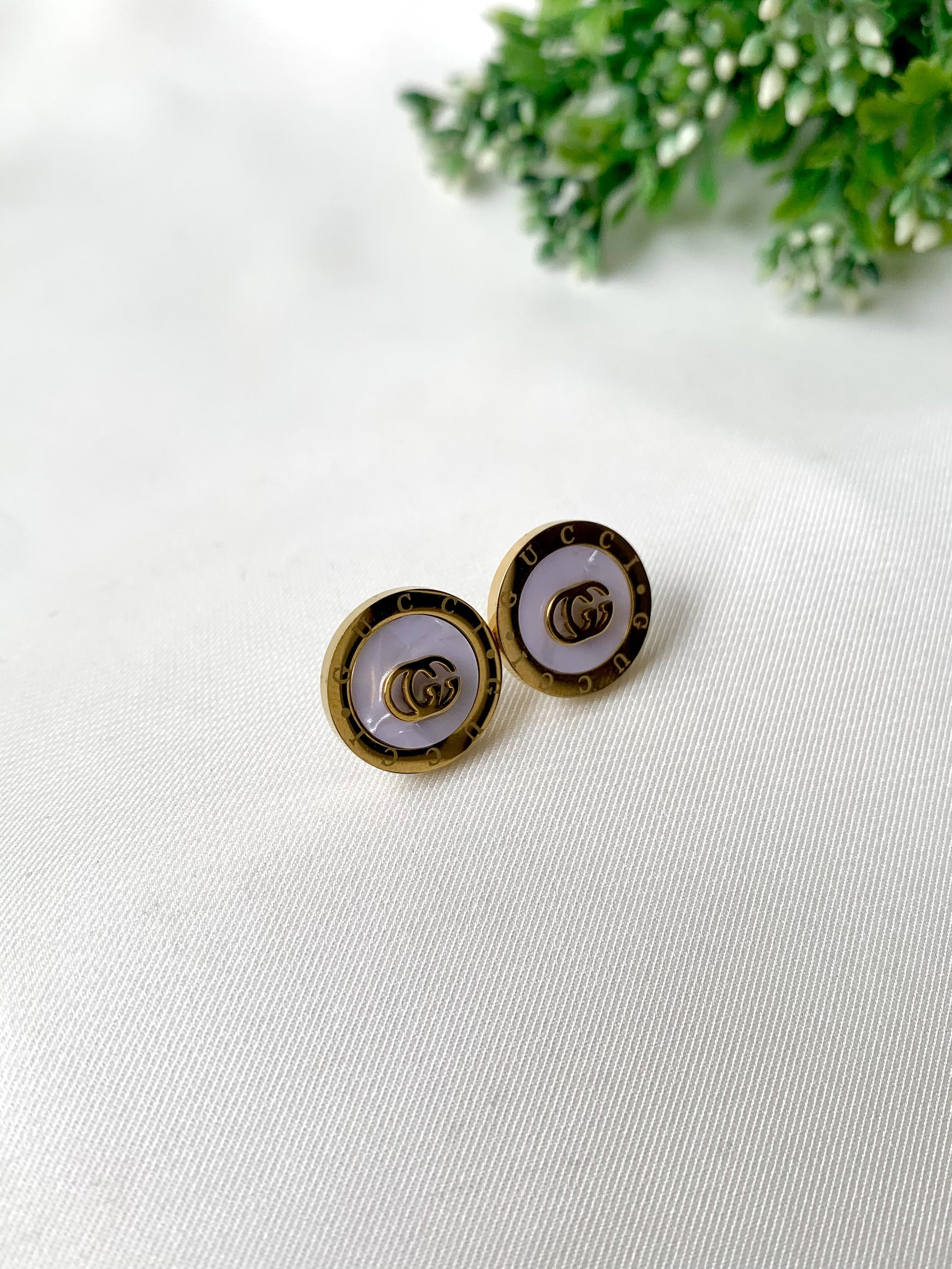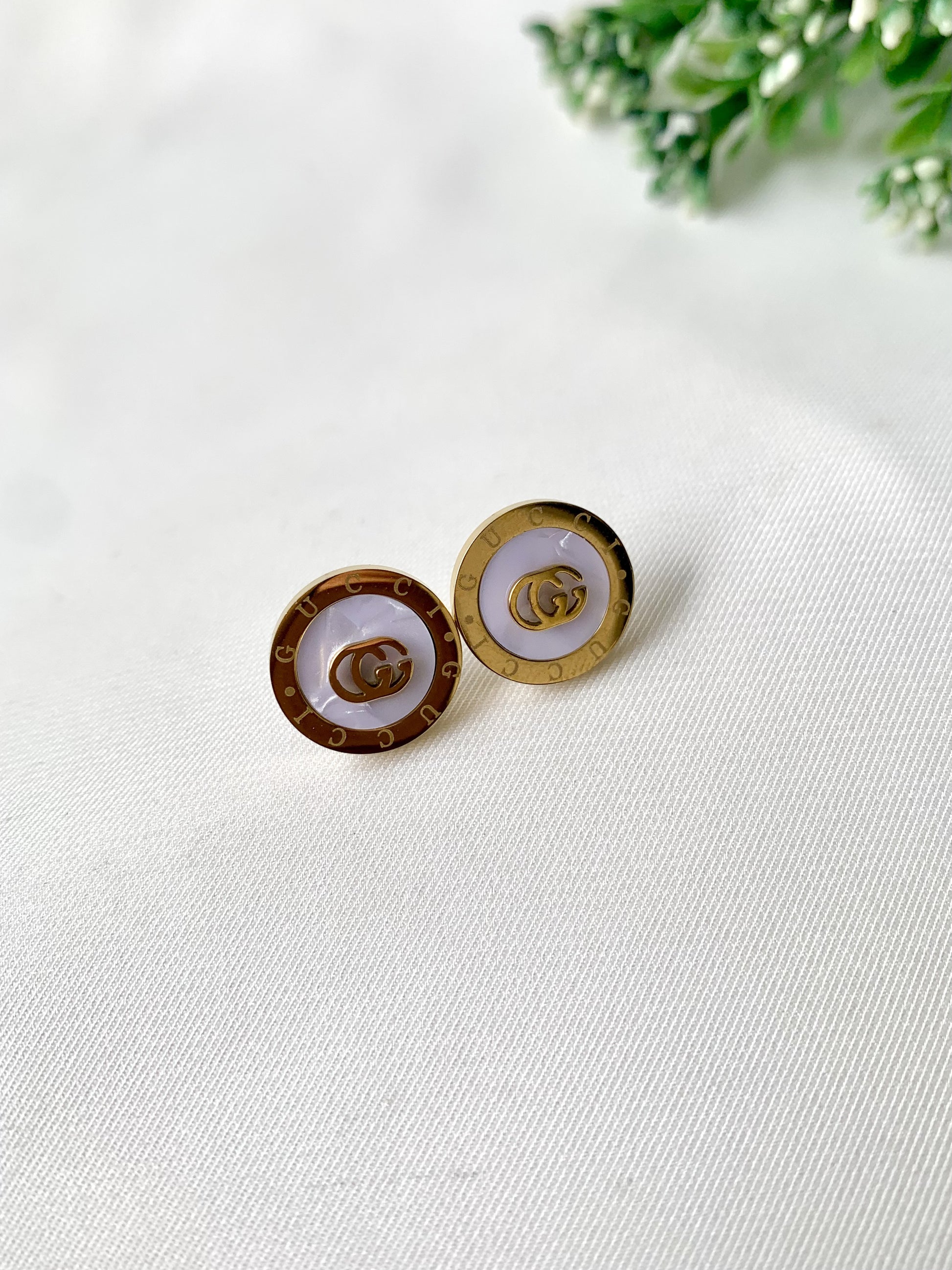 Muse is a statement in simplicity. Featuring a clean white enamel inlay framed in sleek gold plating, these round stud earrings are crafted from premium stainless steel for everyday polish. The raised GG emblem adds an extra hit of designer-inspired charm — bold enough to stand alone, minimal enough to stack.