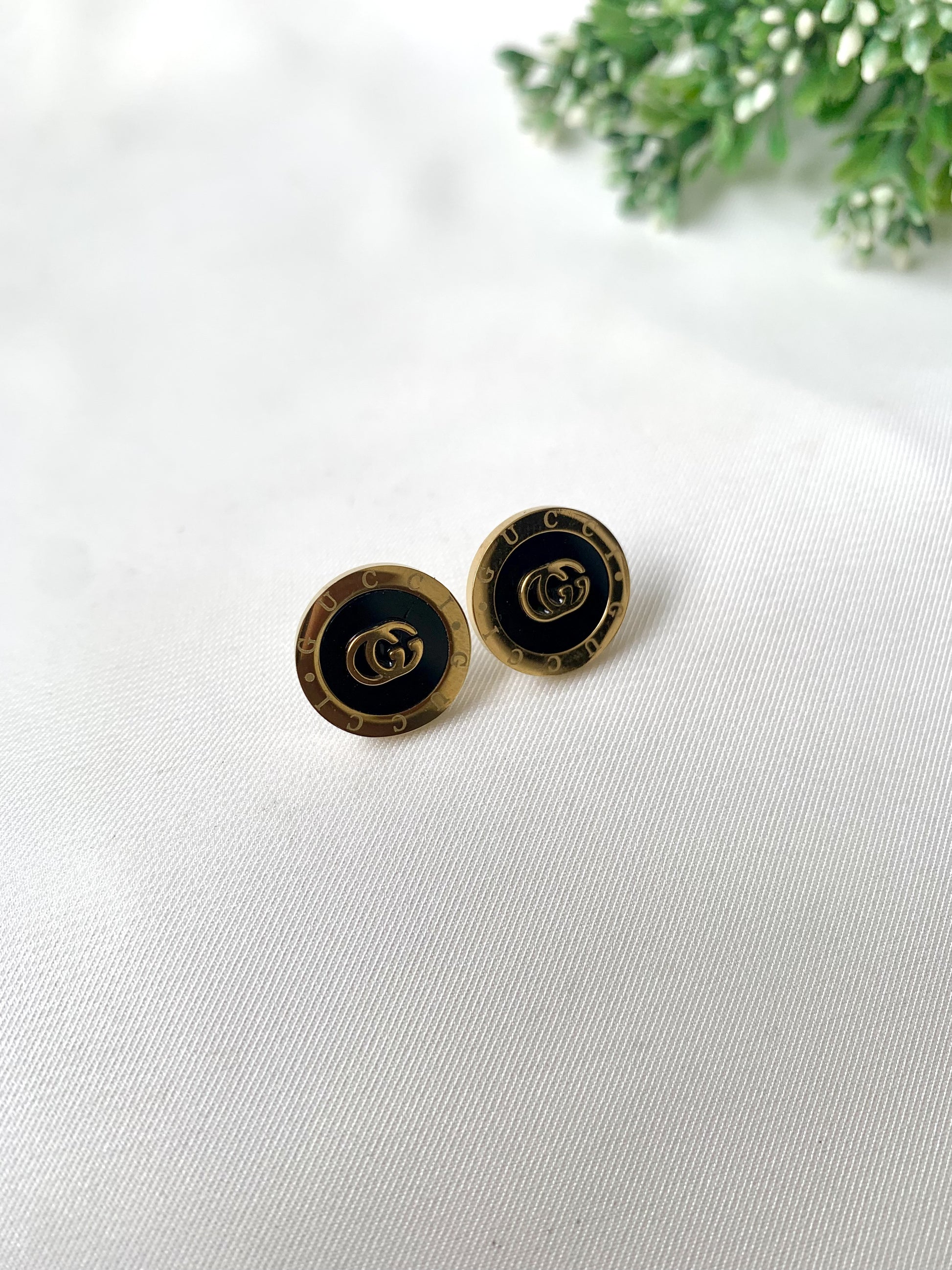 Muse Noir is what happens when classic design meets dark allure. These black enamel studs with a bold gold GG emblem are crafted from premium stainless steel and finished with a glossy polish that catches the light just right.