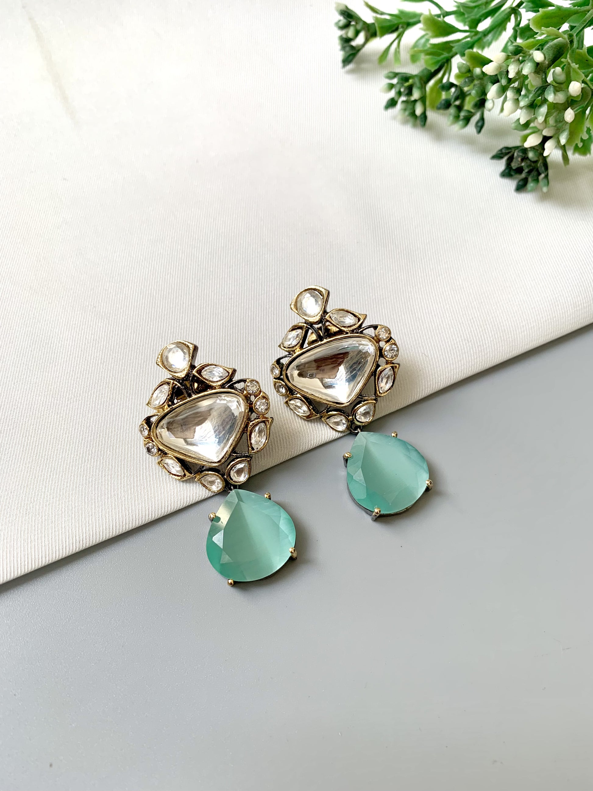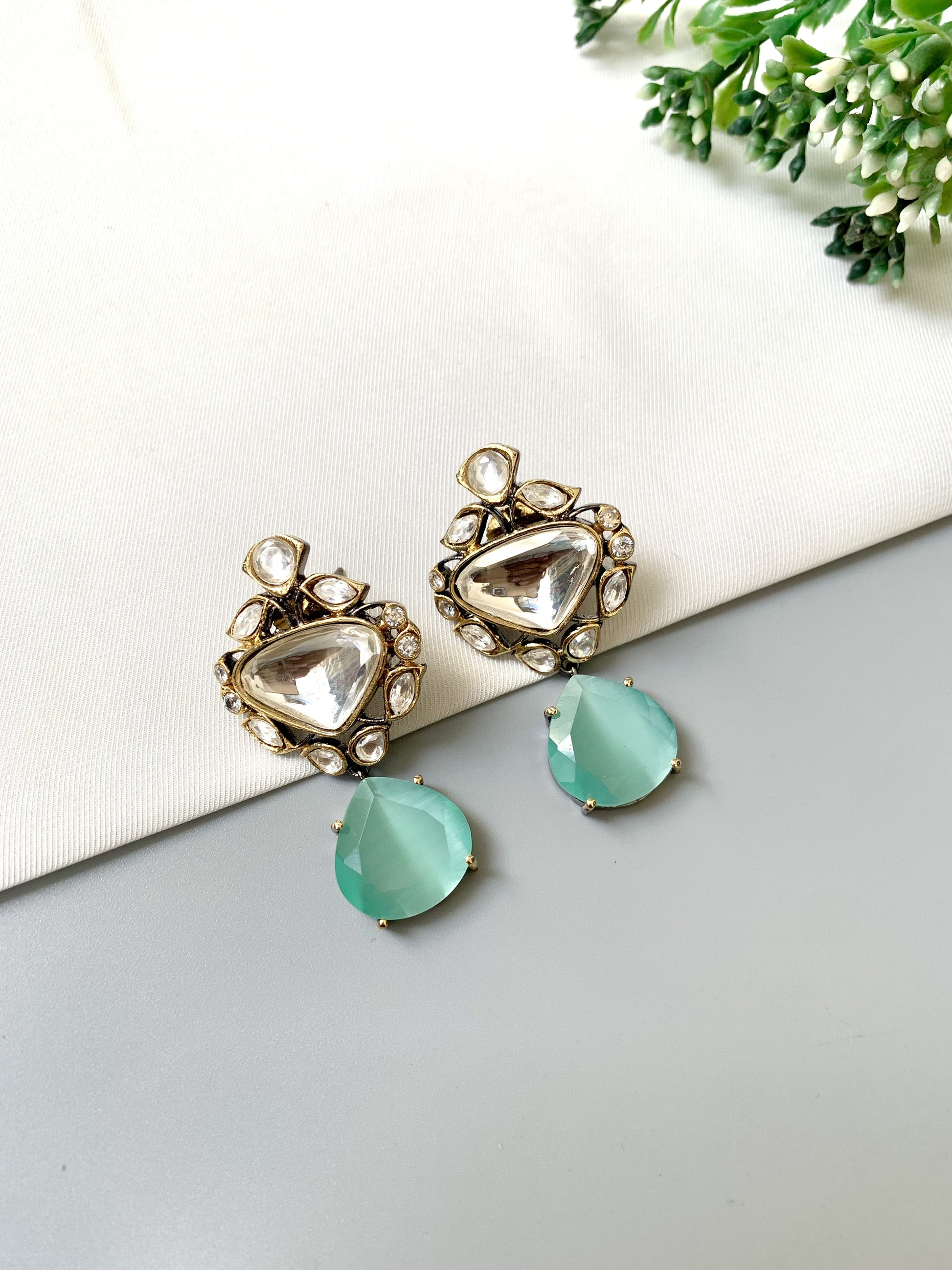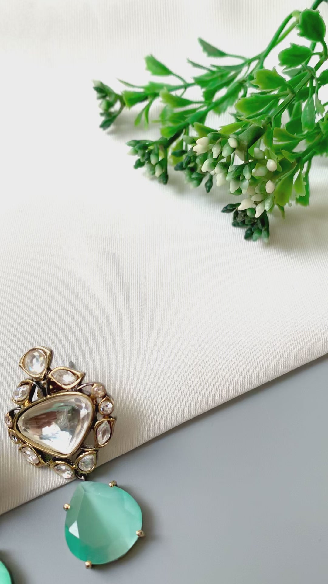 Sahira Mint – Polki Kundan Earrings with Semi-Precious Drops