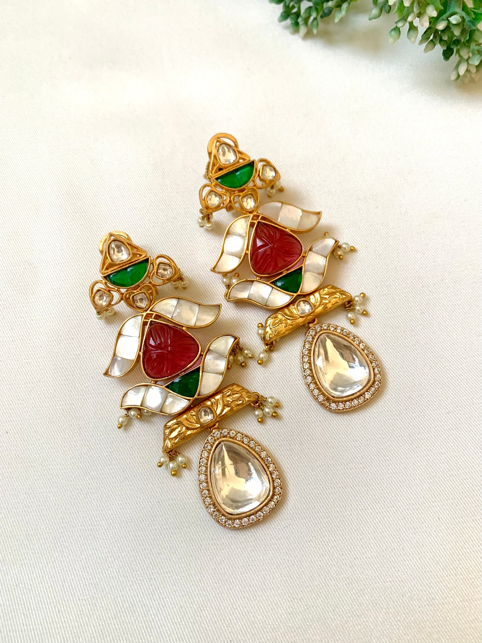 Stones: American Diamonds, Moissanite Polki Kundan, Semi-Precious Pearls & hand-carved Sapphire, Ruby & Emerald